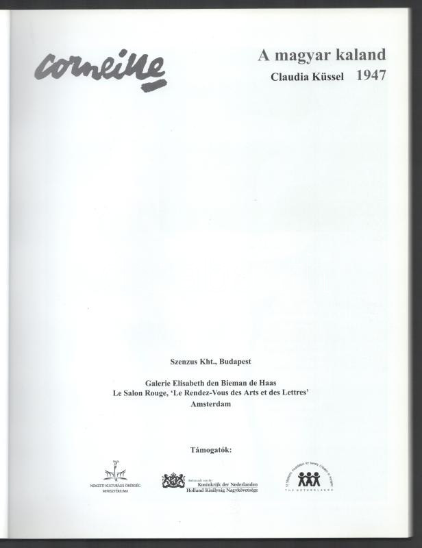 Description: Claudia Küssel: Corneille. A magyar kaland 1947. (Kiállítási katalógus). Bp., 2002, Szenzus Kht., 111+(1) p. Gazdag képanyaggal illusztrálva. Kiadói papírkötés.