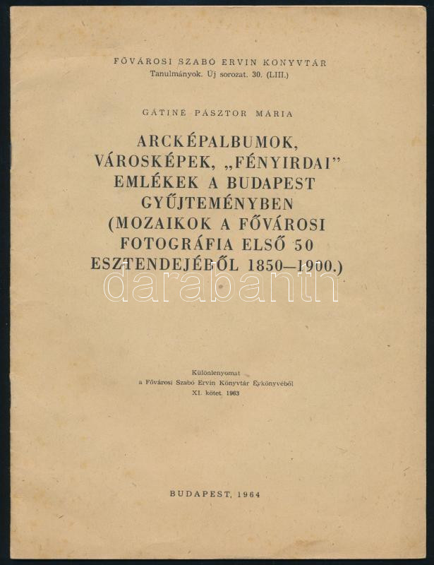 Gátiné Pásztor Mária: Arcképalbumok, városképek, "fényirdai"... https://www.darabanth.com/en/504-Online-auction/504.0/Books/Books-Architecture-Art~2500026/Gatine-Pasztor-Maria-Arckepalbumok-varoskepek-fenyirdai-emlekek-a-Budapest-gyujtemen~II3424699