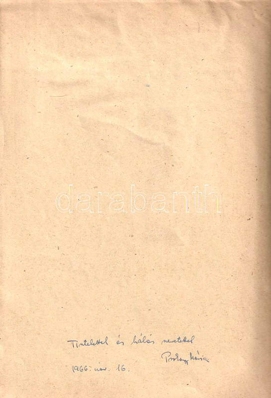 Dedikált: "Tisztelettel és hálás szeretettel: Prokopp Mária. 1966. nov. 16."