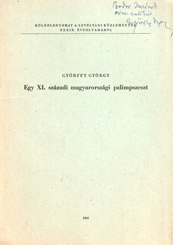 Dedikált: "Bodor Imrének szíves emlékül: Györffy György".