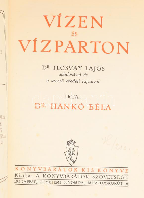 Hankó Béla: Vízen és vízparton. Könyvbarátok Kis Könyve. Bp.,[1933],Ki... https://www.darabanth.com/en/504-Online-auction/504.0/Books/Books-Hunting~2500028/Hanko-Bela-Vizen-es-vizparton-Konyvbaratok-Kis-Konyve-Bp-1933-Kir-M-Egyetemi-nyomda-~II3410756
