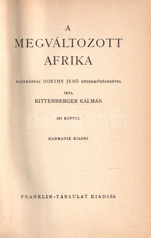 A megváltozott Afrika. Nagybányai Horthy Jenő közreműködésével írta Kittenberger Kálmán. 109 képpel.