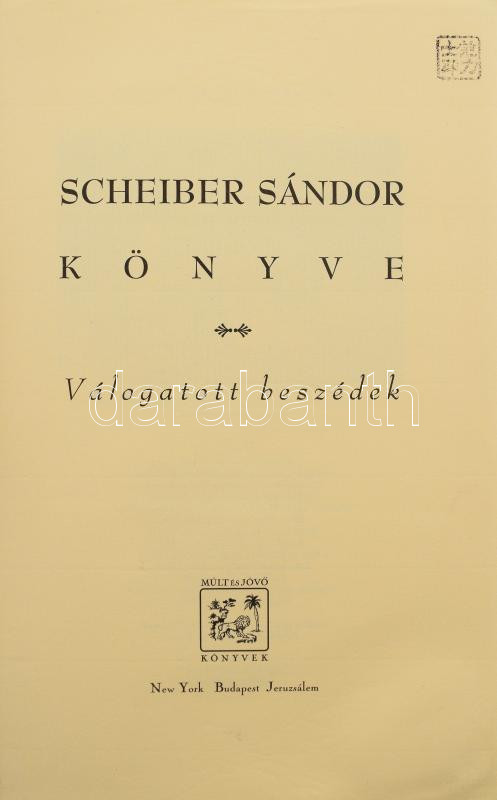 Scheiber Sándor könyve. Válogatott beszédek. Vál. és szerk.: Kőbányai János. A borító belső oldalán beragasztott lapon a szerkesztő, Kőbányai János (1951- ) Scheiber Sándor-díjas író, szerkesztő, szociográfus, fotóművész dedikációjával (,,Félix Pálnak szeretettel Kőbányai Jánostól"). Bp., 1994, Múlt és Jövő, 2 sztl. lev.+ XIV+428+(6) p. Kiadói papírkötés.