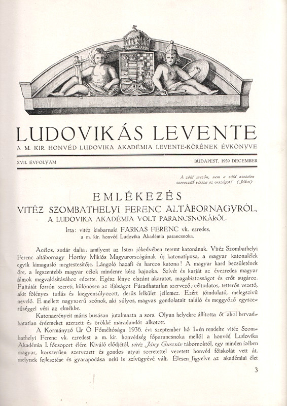 Ludovikás Levente. A M. Kir. Honvéd Ludovika Akadémia Levente-körének évkönyve. XVII. évfolyam. (1939).