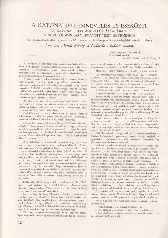 Budapest, 1939. M. Kir. Honvéd Ludovika Akadémia (Stádium Sajtóvállalat Rt.) 71 + [1] p. + 5 t. (ebből 2 színes).
