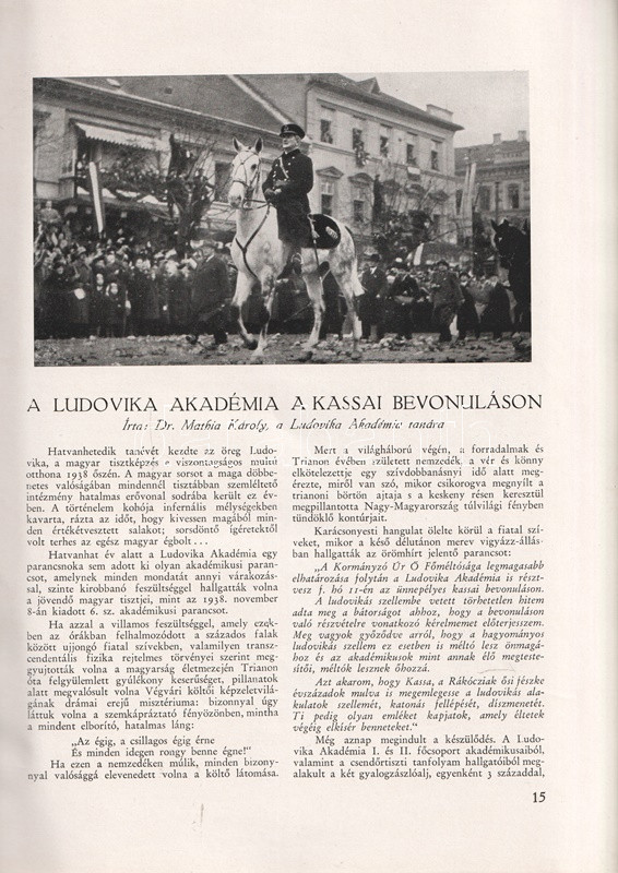 A Ludovika Akadémia tanárai és hallgatói által írt, szövegközti és egész oldalas felvételekkel, rajzokkal gazdagon díszített évkönyv pedagógiai szakcikkeket, hadászati gyakorlatokról és akadémiai ünnepségekről írt beszámolókat tesz közzé. A Ludovika Akadémia az elmúlt tanévben nem csupán a kassai bevonuláson vett részt: 1939. évi hadgyakorlatát is a Felvidék visszatért részein tartotta. Mindkét eseményről gazdag fotóanyag szerepel kötetünkben. Kiadványunk szerepel az Ideiglenes Nemzeti Kormány által 1945-ben betiltott művek jegyzékén.
