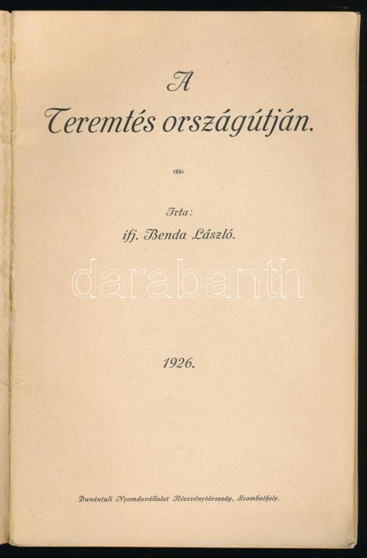 [Bendefy] Benda László, ifj.: A teremtés országútján. Életképek a Föld... https://www.darabanth.com/en/504-Online-auction/504.0/Books/Books-Natural-sciences-Medicine~2500029/Bendefy-Benda-Laszlo-ifj-A-teremtes-orszagutjan-Eletkepek-a-Fold-es-az-elet-torte~II3423422