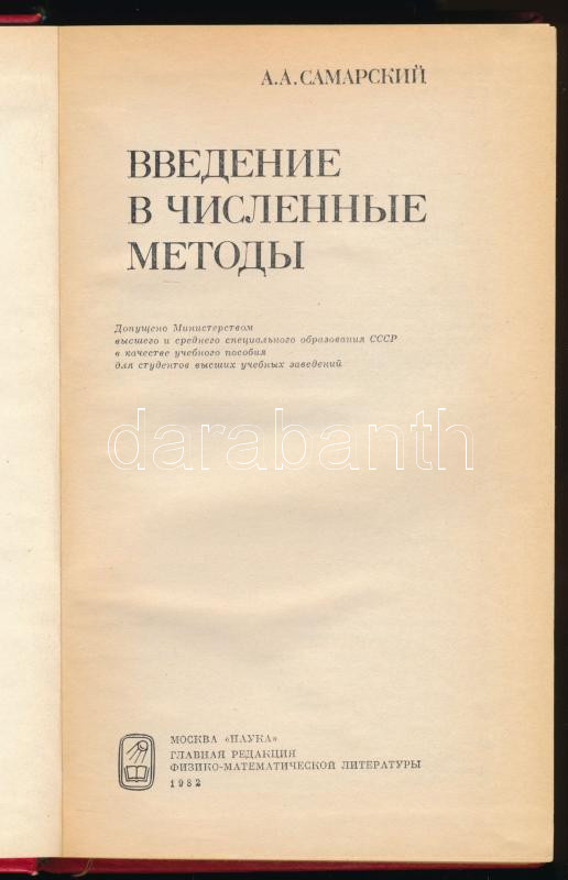Szamarszkij, A. A.: Bevezetés a numerikus módszerek elméletébe. Moszkva, 1981, Nauka, 271+(1) p. Orosz nyelven. Kiadói kartonált papírkötés. / In Russian language. Hardcover.