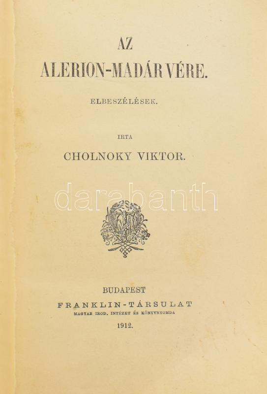 https://www.darabanth.com/en/504-Online-auction/504.0/Books/Books-Other-rarities~2500040/Cholnoky-Viktor-Az-alerion-madar-vere-Elbeszelesek-Bp-1912-Franklin-Elso-kiadas-Felv~II3421993