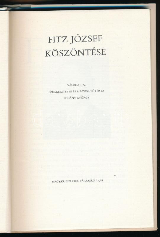 Fitz József köszöntése. Vál., szerk. és a bevezetőt írta: Pogány Györg... https://www.darabanth.com/en/504-Online-auction/504.0/Books/Books-Other-rarities~2500040/Fitz-Jozsef-koszontese-Val-szerk-es-a-bevezetot-irta-Pogany-Gyorgy-Bp-1988-Magy~II3227193