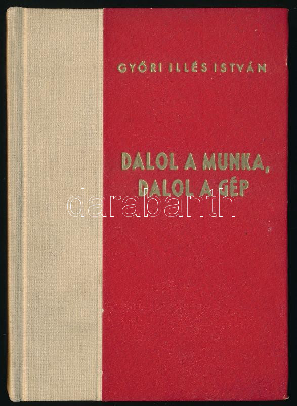 Győri Illés István: Dalol a munka dalol a gép. Versek. Kossa István előszavával. Bp., 1948, Athenaeum, 96 p. Kiadói félvászon-kötés, kissé kopott borítóval. "Ebből a műből 5200 példány készült, melyből 200 számozott amateur példányt a szerző sajátkezű aláírásával látott el." Számozott (26./200), a szerző, Győri Illés István (1892-1970) költő, újságíró által DEDIKÁLT példány.