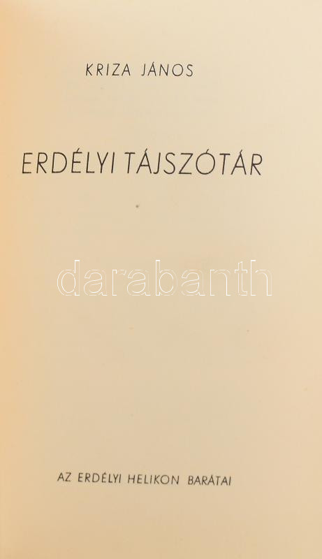 Kriza János: Erdélyi tájszótár. Az Erdélyi Helikon Barátainak ajándékk... https://www.darabanth.com/en/504-Online-auction/504.0/Books/Books-Other-rarities~2500040/Kriza-Janos-Erdelyi-tajszotar-Az-Erdelyi-Helikon-Baratainak-ajandekkonyve-Bp-1940-~II3420620
