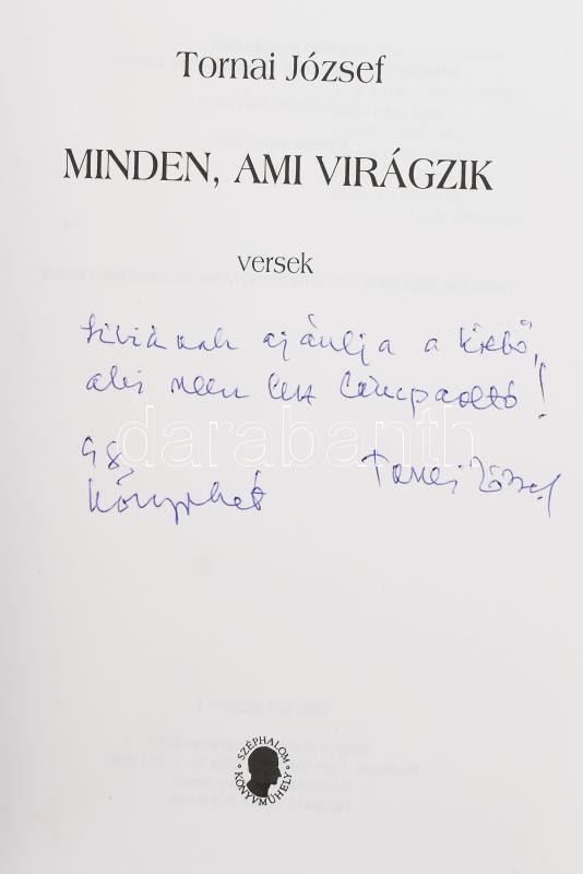 Tornai József: Minden, ami virágzik. Versek. A szerző, Tornai József (... https://www.darabanth.com/en/504-Online-auction/504.0/Books/Books-Other-rarities~2500040/Tornai-Jozsef-Minden-ami-viragzik-Versek-A-szerzo-Tornai-Jozsef-1927-2020-Kossuth-es-JC3~II3164650