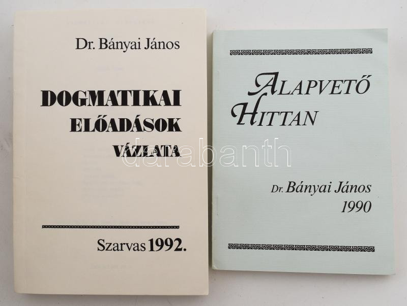 Dr. Bányai János 2 műve: Alapvető hittan. H.n., 1990, szerzői kiadás, V+188+(2) p. Kiadói papírkötés. + Dogmatikai előadások vázlata. Szarvas, 1992, szerzői kiadás, XXI+(1)+341+(1) p. Kiadói papírkötés.