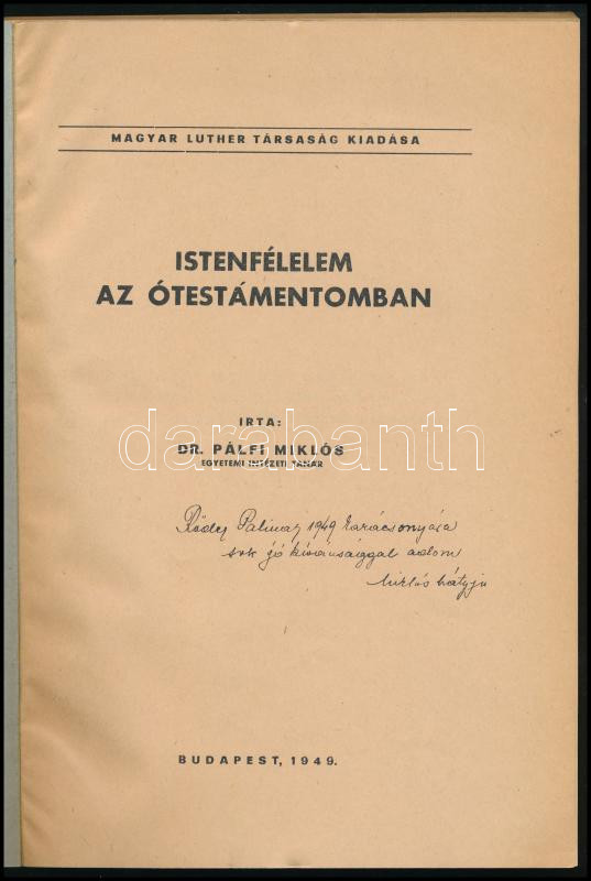 https://www.darabanth.com/en/504-Online-auction/504.0/Books/Books-Religion~2500035/Dr-Palfi-Miklos-Istenfelelem-az-Otestamentomban-DEDIKALT-Bp-1949-Magyar-Luther-Tarsasa~II3421947