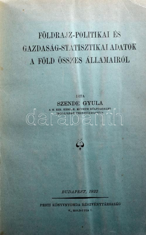 Szende Gyula: Földrajz-politikai és gazdaság-statisztikai adatok a föl... https://www.darabanth.com/en/504-Online-auction/504.0/Books/Books-Social-sciences~2500031/Szende-Gyula-Foldrajz-politikai-es-gazdasag-statisztikai-adatok-a-fold-osszes-allamairol-Bp~II3422289