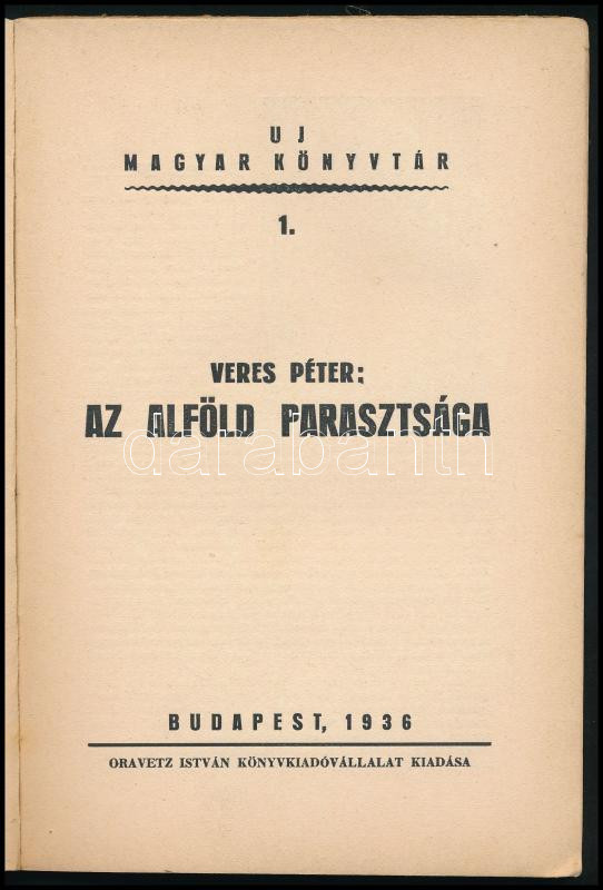 https://www.darabanth.com/en/504-Online-auction/504.0/Books/Books-Social-sciences~2500031/Veres-Peter-Az-Alfold-parasztsaga-Uj-Magyar-Konyvtar-1-Bp-1936-Oravetz-Istvan-Konyvkia~II3422301