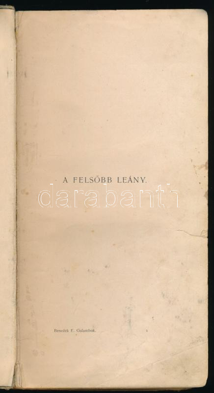 Benedek Elek: Galambok. Elbeszélések fiatal leányoknak. (Bp.), é.n. (cca 1900), (Athenaeum), 209+(3) p. Kiadói dekoratív, aranyozott, festett egészvászon-kötés, viseltes borítóval és gerinccel, hiányzó címlappal, helyenként kissé sérült, koszos, foltos lapokkal.