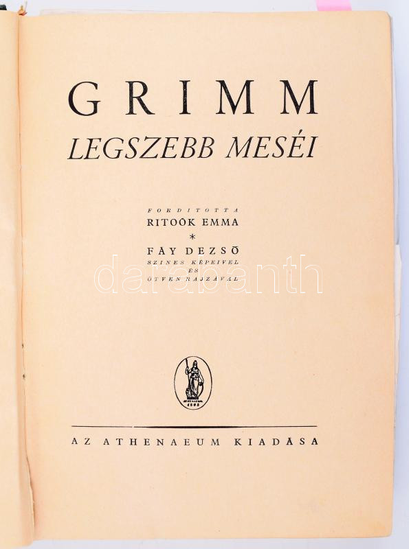 Grimm legszebb meséi. Fordította Ritoók Emma. Fáy Dezső színes képeive... https://www.darabanth.com/en/504-Online-auction/504.0/Books/Books-Tales~2500038/Grimm-legszebb-mesei-Forditotta-Ritook-Emma-Fay-Dezso-szines-kepeivel-es-otven-rajzaval~II3421962