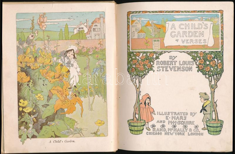 Stevenson, Robert Louis: A Child's Garden Verses. Chicago, New York, London, Rand, McNally & Co. Kiadói egészvászon kötés, kissé kopottas állapotban.