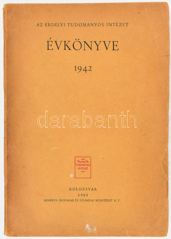 Az Erdélyi Tudományos Intézet évkönyve 1942. Kolozsvár, 1943, Gróf Tel... https://www.darabanth.com/en/504-Online-auction/504.0/Books/Books-Travelling-Local-History~2500021/Az-Erdelyi-Tudomanyos-Intezet-evkonyve-1942-Kolozsvar-1943-Grof-Teleki-Pal-Tudomanyos-In~II3422284