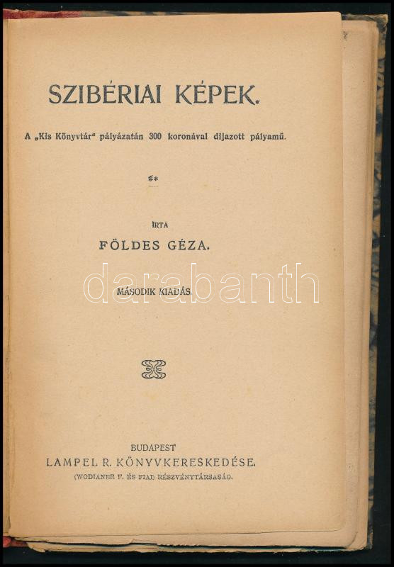 Földes Géza: Szibériai képek. Bp., [1904], Lampel R., 1 t.+ 51+(1) p. ... https://www.darabanth.com/en/504-Online-auction/504.0/Books/Books-Travelling-Local-History~2500021/Foldes-Geza-Sziberiai-kepek-Bp-1904-Lampel-R-1-tplus-51plus1-p-Masodik-kiadas-AtkotC3~II3422858