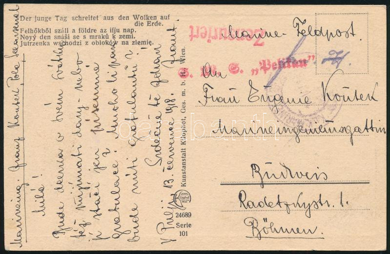 1918 Tábori posta képeslap / Field postcard "S.M.S. Pelikan"