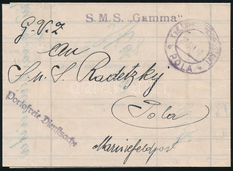 1918 Tábori posta számla / Field post receipt "S.M.S. Gamma"