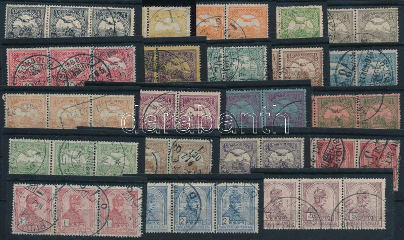 https://www.darabanth.com/en/504-Online-auction/504.0/Hungarian-philately-and-postal-history/Issues-between-1900-1919~500033/1913-Turul-sor-harmascsikokban-klf-tipusokkal-set-in-stripes-of-3~II3425851