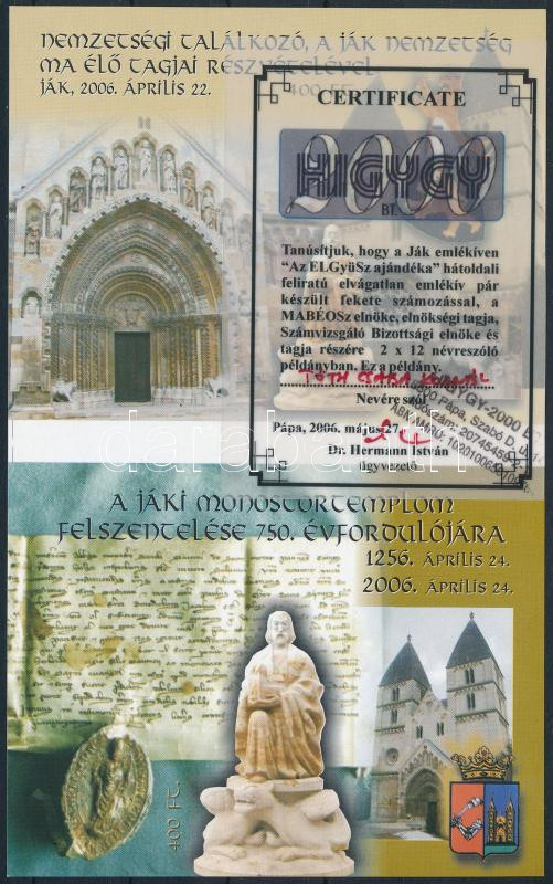 https://www.darabanth.com/en/504-Online-auction/504.0/Hungarian-philately-and-postal-history/Private-souvenir-sheet~500062/2006-Jaki-templom-emlekiv-plus-tanusitvany~II3425264
