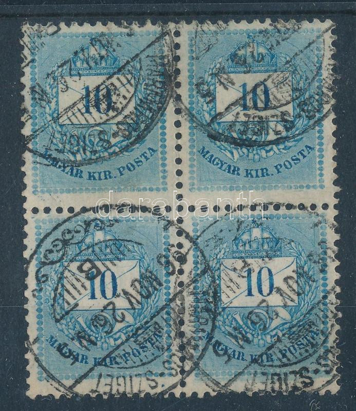 1881 Színesszámú 10kr 4-es tömbben, a jobb alsó bélyegen szegélylécnyo...