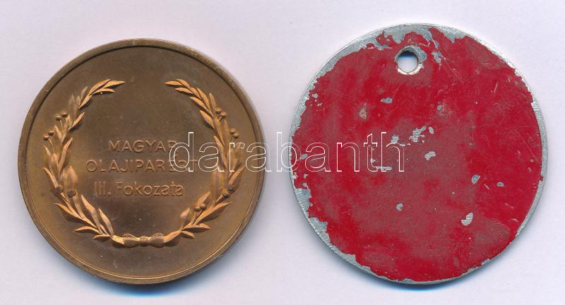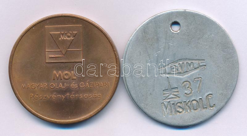 DN "BVM - 37 - Miskolc" (Beton- és Vasbetonipari Művek) egyoldalas lyukasztott Al bárca, hátoldala pirosra festve (43mm) + DN "MOL Magyar Olajé ás Gázipari Részvénytársaság / Magyar Olajiparért III. Fokozata" kétoldalas bronz emlékérem (40mm) T:XF,VF