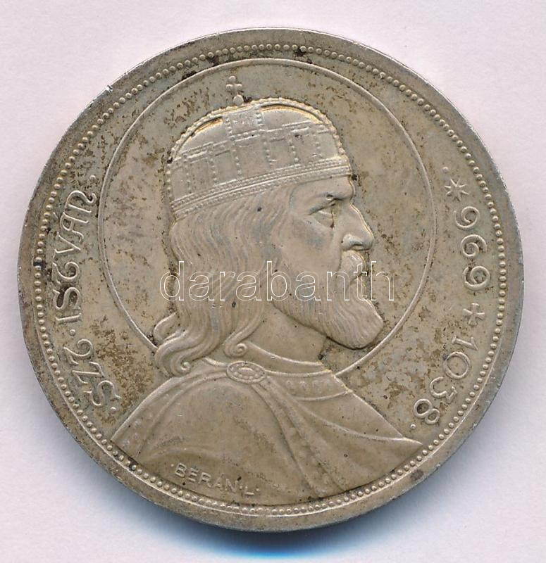 https://www.darabanth.com/en/504-Online-auction/504.0/Numismatics/Hungarian-coins-and-coins-with-Hungarian-mint-marks~4500055/1938-5P-Ag-3Cem3ESzent-Istvan3Cem3E-TAU-patina3Cbr-3E-Adamo-P81~II3423396