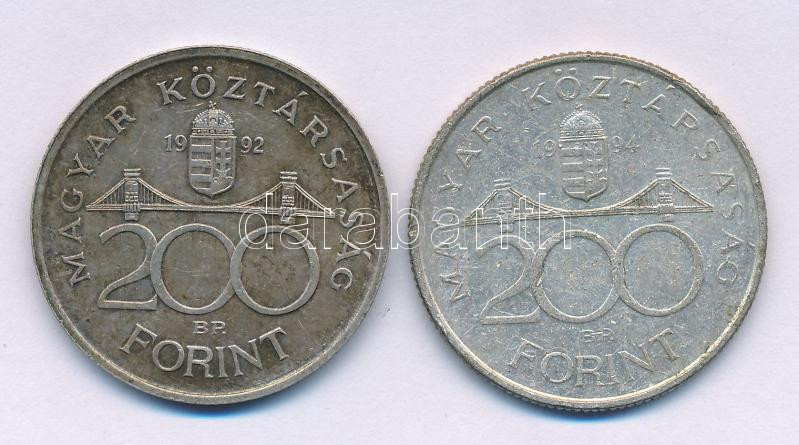https://www.darabanth.com/en/504-Online-auction/504.0/Numismatics/Hungarian-coins-and-coins-with-Hungarian-mint-marks~4500055/1992-200Ft-Ag-MNB-plus-1994-200Ft-Ag-Deak-TXF-VF-ph-patina3Cbr-3E-Adamo-F13-F131~II3423850