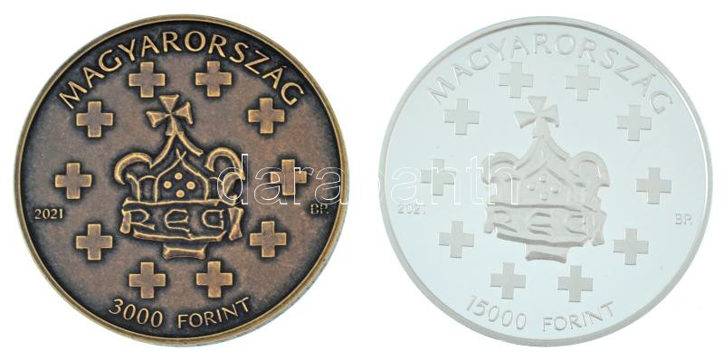 2021. 3000Ft Cu-Zn "Országépítő királyok - Szent István" kapszulában + 2021. 15.000Ft Ag "Országépítő királyok - Szent István" kapszulában T:BU,PP