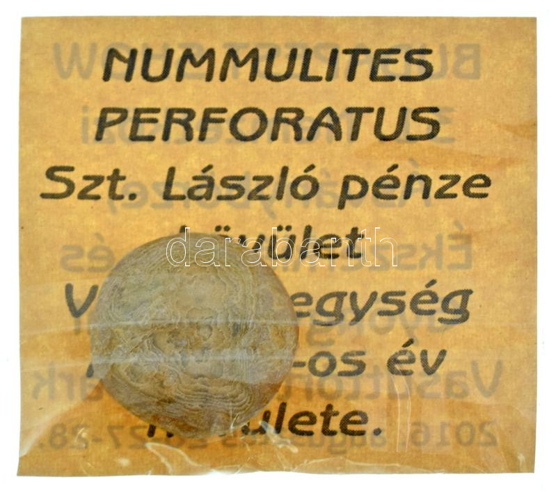 2016. "NUMMULITES PERFORATUS - Saint Ladislaus' coin" 1pc of Eocene Epoch fossils with Hungarian language information sheet