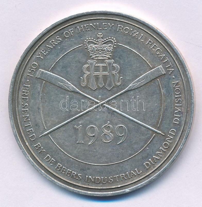 Nagy-Britannia 1989. "150 éves a Henley Royal Regatta - Bemutatja: De Beers ipari gyémánt részlege / Gyémánt Kihívás - Evezés" kétoldalas, peremen jelzett Ag emlékérem kapszulában (31,7g/0.925/40mm) T:XF