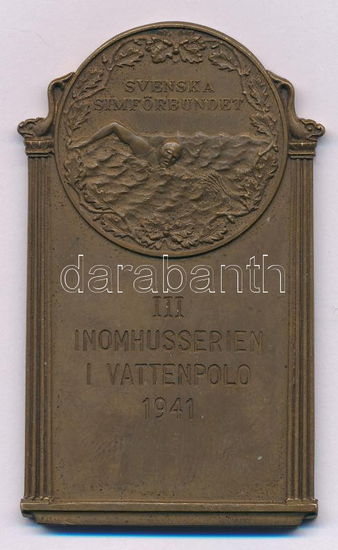 Svédország 1941. "Svéd Úszószövetség / III Fedett pályás sorozat I VÃzilabda" egyoldalas bronz dÃjérem, hátoldalán "C.C.SPORRONG&CO STOCKHOLM" gyártói jelzéssel (~40x57mm) T:AU