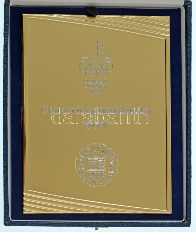 Slovakia 1990 k. "Slovenský Olympijský Výbor - Cena viceprezidentky SOV - Slovolympfila - Bratislava, 2008 (Slovak Olympic Committee - SOC Vice President's Award - Slovak Olympic Philatelic Exhibition - Bratislava, 2008)" metal commemorative plaque in original (slightly worn) case (150x200mm) C:UNC