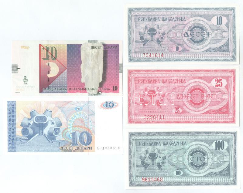 Észak-Macedónia 1992. 10D + 25D + 100D + 1993. 10D + 2001. 10D T:UNC,AU