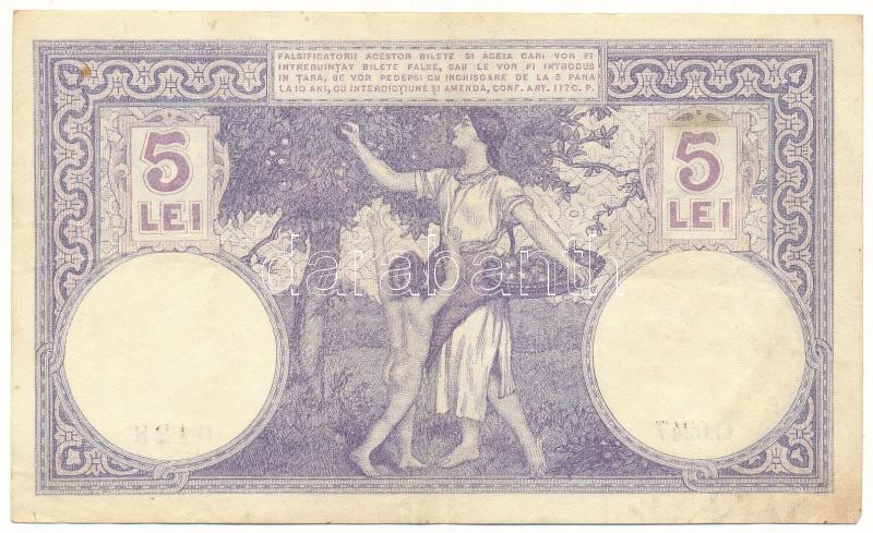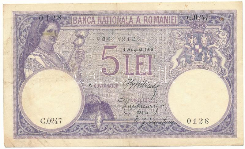 https://www.darabanth.com/en/504-Online-auction/504.0/Numismatics/Worldwide-banknotes~4500061/Romania-1916-augusztus-4-5L-TF-folt-egyebkent-szep-papir3Cbr-3E-Romania-1916-August-4th-5-~II3422859