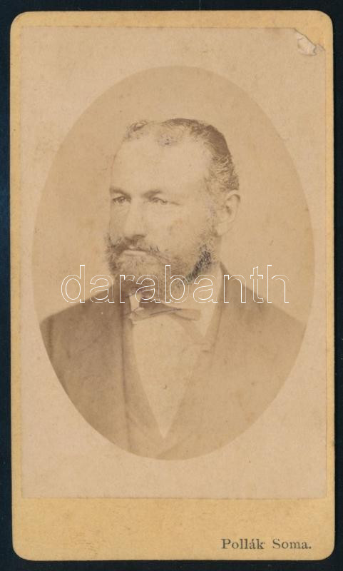 cca 1870-1880 Úr portréja, vizitkártya Pollák Soma váci műterméből, kis sérüléssel, 10,5x6 cm (Ritka!)