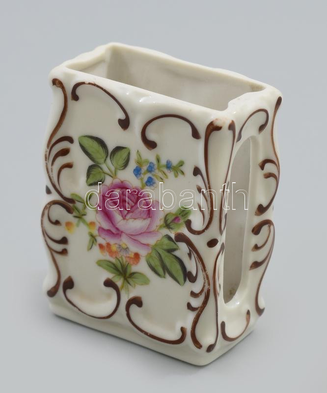 Herendi virágmintás gyufatartó. Jelzett, hibátlan, 6x5 cm