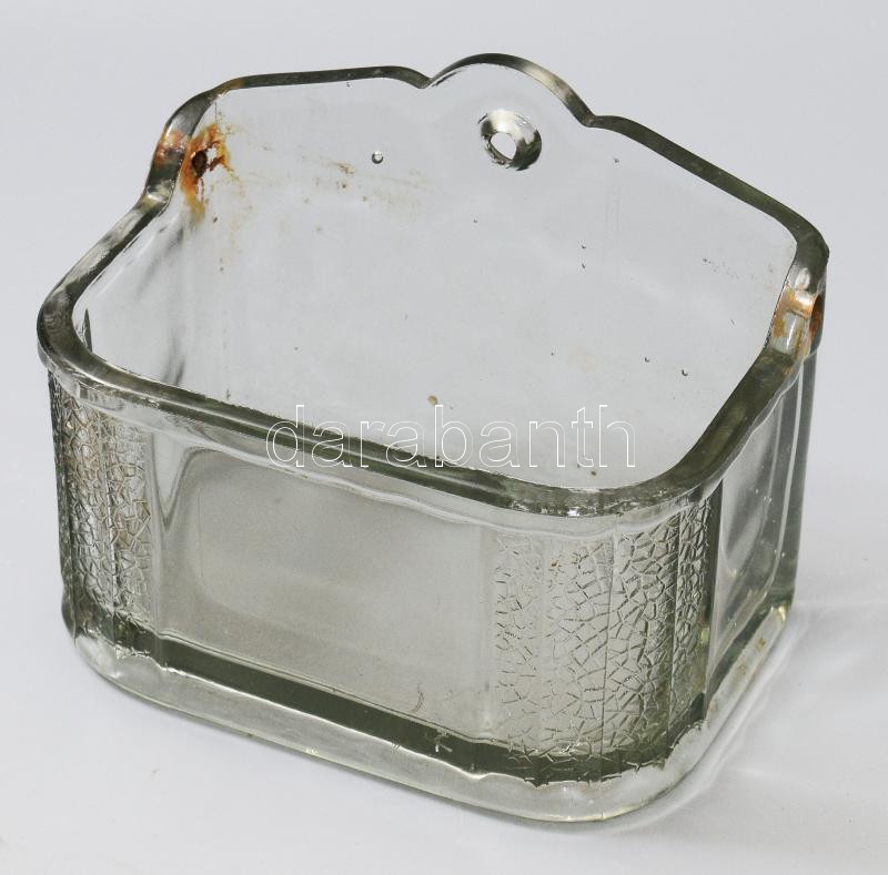 Régi üveg fali fűszertartó, fedő nélkül, 17x11 cm