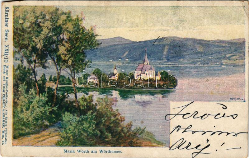 Description: 1899 (Vorläufer) Maria Wörth (Kärnten), Maria Wörth am Wörthersee. Kärtner Seen XXII/10. Wiener Künstler-Postkarte. Druck und Verlag Philipp & Kramer (cut)