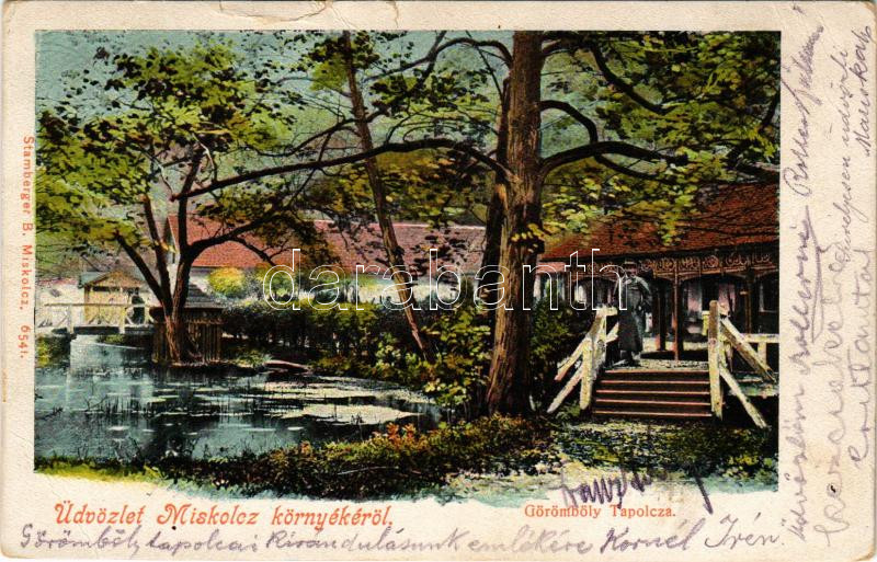 1900 Miskolctapolca, Görömbölytapolca, Görömbölyi-Tapolca, Tapolca (Miskolc); fürdő. Stamberger B. kiadása (szakadás / tear)