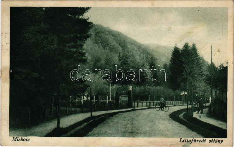 1939 Miskolc, Lillafüredi sétány, kerékpáros. Móriczné N. Lenke felvétele (fl)