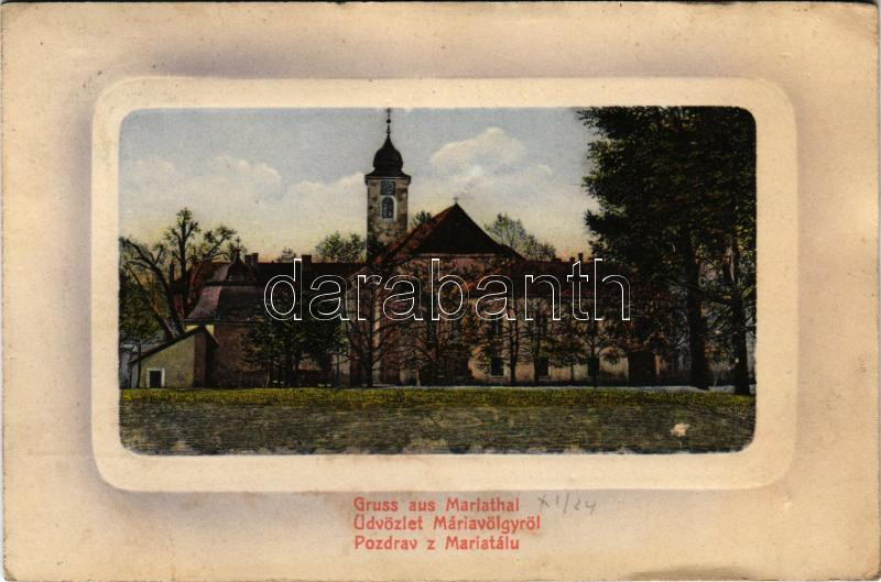 1914 Máriavölgy, Marienthal, Marianka, Mariatál (Pozsony, Pressburg, Bratislava); templom / church. Franz Schemm Kunstanstalt (ázott / wet damage)