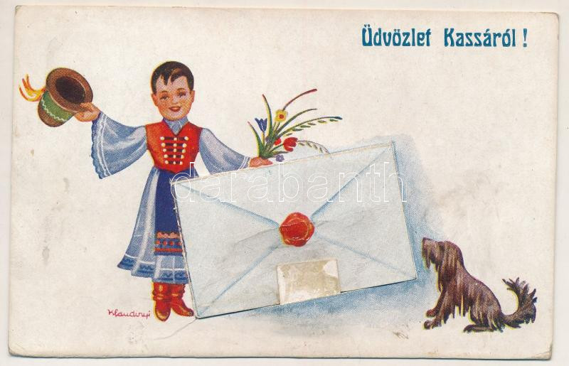 1939 Kassa, Kosice; magyar népviseletes leporellólap 10 kis képpel / Hungarian folklore leporellocard with 10 small pictures s: Klaudinyi (fl)