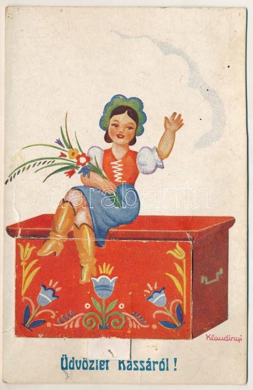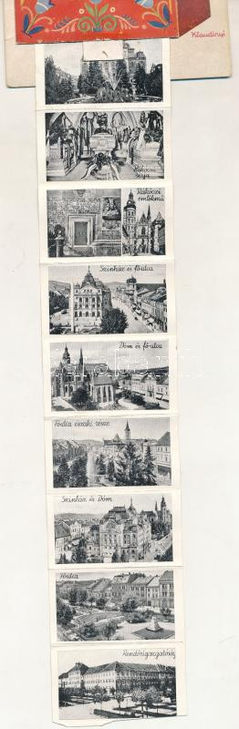 1939 Kassa, Kosice; magyar népviseletes leporellólap 10 kis képpel / Hungarian folklore leporellocard with 10 small pictures s: Klaudinyi (fl)